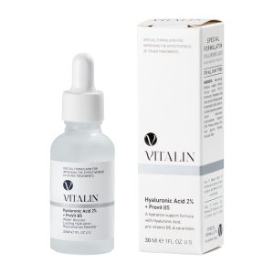 سرم پوست ویتالین مدل هیالورونیک حجم 30 میلی لیتر سرم آبرسان هیالورونیک اسید برند ویتالین با فرمولاسیون پیشرفته برای نفوذ بیشتر و عمقی، به تمام لایه های پوست جهت آبرسانی است. این سرم با تامین رطوبت و آب مورد نیاز پوست، باعث نرم و شاداب شدن آن می شود. وجود ویتامین B5 در ترکیبات این سرم نیز به افزایش جذب بیشتر هیالورونیک اسید کمک می کند. این سرم بسیار سبک و فاقد چربی است و زود جذب شده و باعث ایجاد جوش نمی شود. همچنین به ترمیم و بازسازی پوست کمک کرده و و باعث افزایش انعطاف پذ یری و